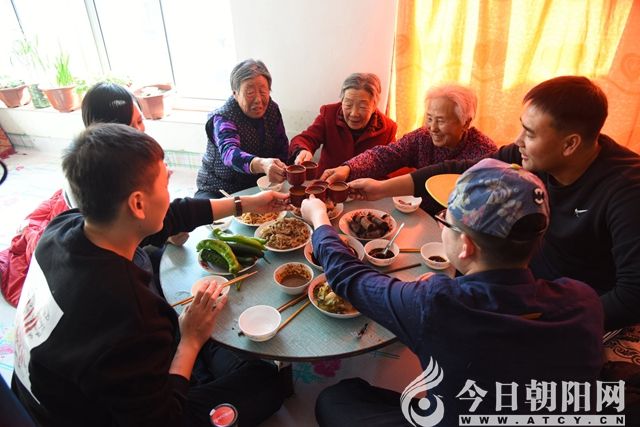 過年早早就將老人接來我家(紅衣服老人是五姑)