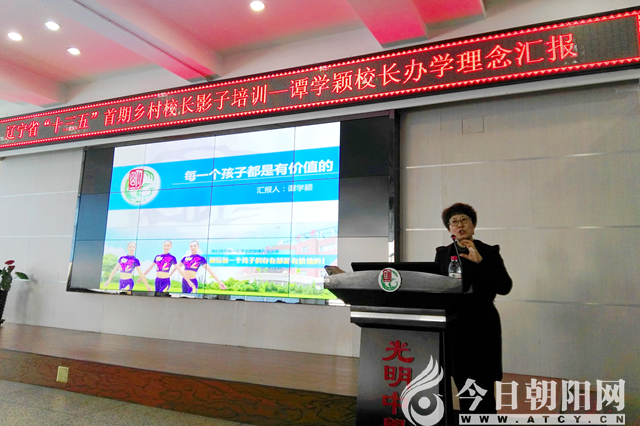?。ǘ┥蜿柺泄饷鲗W(xué)校校長譚學(xué)穎作了題為《每個孩子都是有價值的》報告。