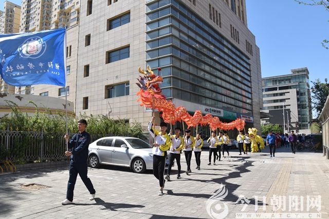 上午9時(shí),朝陽市勞動(dòng)高級(jí)技工學(xué)校師生一行50多人在珠江廣場集合,由該校負(fù)責(zé)同志帶隊(duì),高舉旗幟,迎著朝陽,邁著整齊的步伐,向此次活動(dòng)的演出地——朝陽公園闊步前進(jìn)。