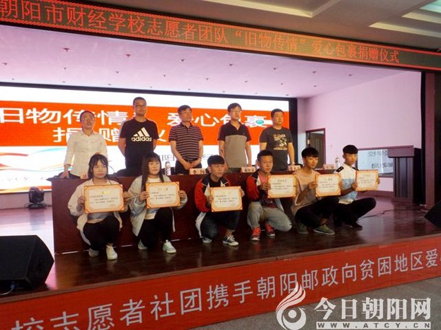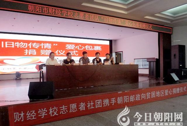 為進一步貫徹落實社會主義核心價值觀,努力踐行青年志愿者精神,5月16日,朝陽市財經(jīng)學(xué)校志愿者社團攜手朝陽郵政,舉行向貧困地區(qū)“舊物傳情、愛心包裹”捐贈儀式。青年志愿者們慷慨奉獻(xiàn),將學(xué)生們捐贈的愛心包裹統(tǒng)一郵寄給西部貧困山區(qū)孩子。
