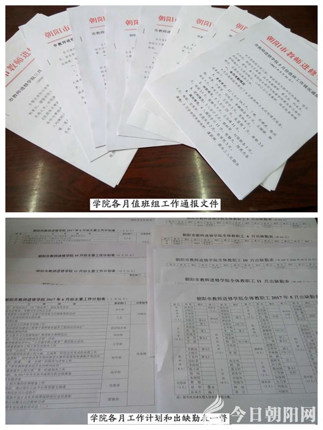 為此,學院相繼出臺了三項重要制度:一是《院領導月帶班值班工作制度》。由一位院級領導帶班,和部分中層干部組成月值班工作組,對學院當月各項工作進行檢查監(jiān)督、協(xié)調(diào)推進,并在月末匯總,在月例會上通報,以此形成大家齊抓共管學院事的工作氛圍;二是《朝陽市教師進修學院每月例會制度》。固定于每個月的月末召開,當月值班組通報值班工作情況,院主要領導安排部署下一個月全院重點工作,以此使全院教職工了解學院工作,關注學院發(fā)展,增強“我是學院人,應謀學院事”的意識;三是《月考勤公示制度》。學院全體人員,凡因故不能到崗者,均須提前填寫請假單或出差報告單,并附上有關證明,報辦公室備案。院級領導因故不能到崗,也嚴格按照《市教育局機關及直屬單位領導干部請假制度》履行請假手續(xù)。每月將考勤情況匯總,在月例會上印發(fā),考勤結(jié)果直接應用于學院評先選優(yōu)、職稱評聘中,以此保證公開、公正、公平,真正做到了“官兵一致,無一例外”。