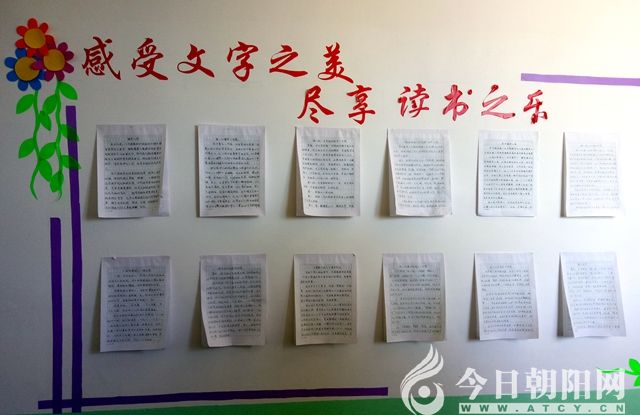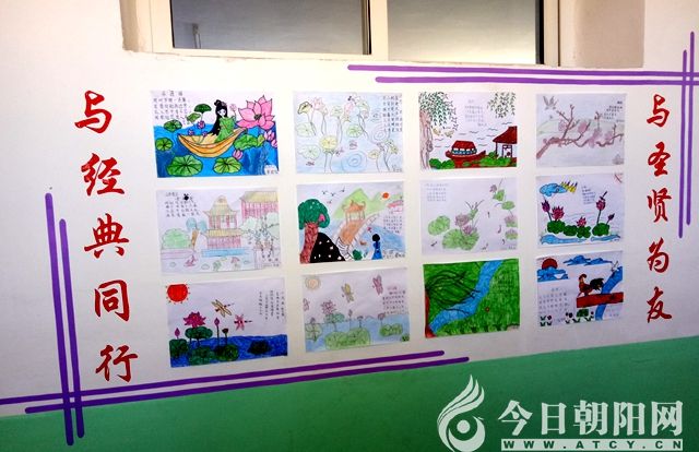 走在學(xué)校的走廊,你會看到學(xué)生制作的各種藝術(shù)作品,剪紙、貼畫、愛心卡、手抄報、詩配畫等。每個班級的門口,都有一塊小黑板,上面有班主任用粉筆寫的古詩詞,墻上還貼著教師和學(xué)生的硬筆書法作品。學(xué)生的綜合實踐活動室更是精彩紛呈,讓你感受到學(xué)校的各個角落都溢滿書香。