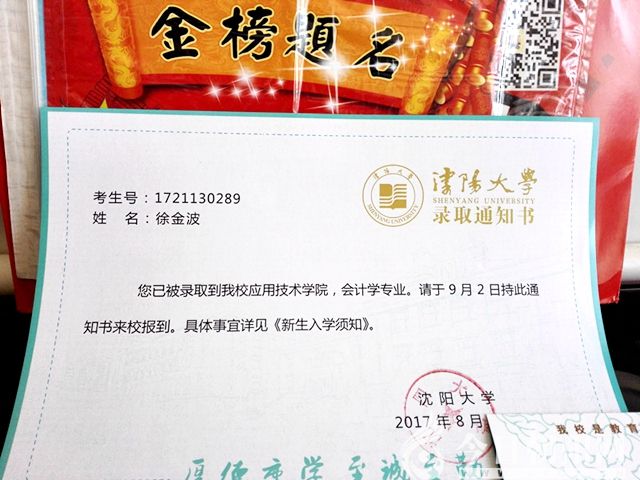 262(92+103+67)+241+86=589!是589,真的是589分!徐金波把這組數(shù)字反復(fù)加了好幾遍!真考上本科大學(xué)了……渴盼過,可此時(shí)又不敢去想。就像他打小就不敢想,也左右不了自己將來一樣心里沒個(gè)底。等從興奮的眩暈中清醒,他知道自己邁出了成功的第一步。