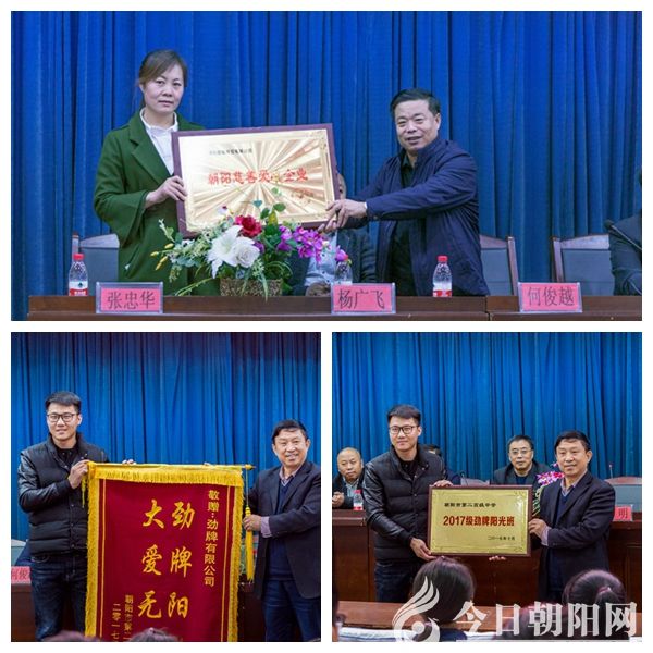 10月25日下午,遼寧省朝陽市第二高級中學2017級勁牌慈善陽光班舉行了開班儀式。勁牌公司朝陽分公司、朝陽市教育局、市慈善總會有關負責人參加了儀式。截至目前,二高中已有四屆勁牌慈善陽光班,共200名陽光生。勁牌陽光班的學生每人每年將獲得勁牌公司提供的4000元助學金。