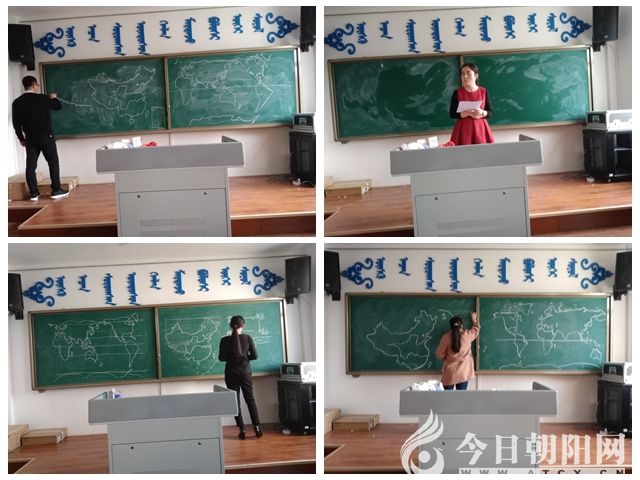 綜合本次大賽,參賽教師表現(xiàn)都很不錯,但是也有幾點不足之處:對板圖的比例、結構、整體注重不夠。有的圖幅較小,沒有充分利用空間;中國輪廓圖有的沒畫南海諸島,國土意識不強;抽選題目雖然簡單,但是有的教師過于緊張,錯誤明顯。如光照圖太陽光線與晨昏線不垂直,風雨天氣示意圖云層雨線不對應,冷暖氣團運動方向不正確;畫圖不夠流暢,涂抹較多,速度較慢;粗細線條選擇不合理、輔助線沒有擦掉,輪廓線模糊;對彩色粉筆的利用較少,色彩搭配欠佳;有的教師世界輪廓圖畫的過于簡略,畫幾何圖形,輪廓不準確不完整。