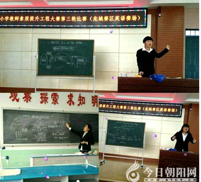 10月14日,大賽第一賽程在朝陽(yáng)一中南校區(qū)進(jìn)行的筆試圓滿結(jié)束。23日進(jìn)入第二賽程:克服教師職業(yè)倦怠演講和英語(yǔ)即興演講,在龍城區(qū)長(zhǎng)江路小學(xué)舉行。演講現(xiàn)場(chǎng)她們或娓娓道來(lái),或鏗鏘有力,或行云流水,或清新婉約。11月15日進(jìn)入第三輪賽程:試講與答辯。試講過(guò)程教師們立足于培養(yǎng)學(xué)生綜合語(yǔ)言運(yùn)用能力,巧妙呈現(xiàn)新知與有效操練活動(dòng)相結(jié)合,注重英語(yǔ)學(xué)習(xí)策略與英語(yǔ)思維能力培養(yǎng),關(guān)注文化意識(shí)與情感態(tài)度的滲透,作業(yè)布置形式新穎兼顧聽(tīng)說(shuō)讀寫(xiě)。圖文并茂、風(fēng)格迥異的板書(shū)設(shè)計(jì)妙不可言,思路獨(dú)特、耳目一新的教學(xué)設(shè)計(jì)讓人腦洞大開(kāi)。“一分耕耘,一分收獲”各位選手自信登場(chǎng),沉著應(yīng)戰(zhàn)。賽場(chǎng)上流露出的淡定、從容與自信儼然久經(jīng)沙場(chǎng)的戰(zhàn)將。