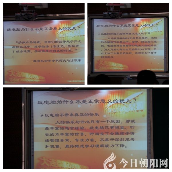 在“都有什么會讓學(xué)習無法進行?”這一環(huán)節(jié)中,湯老師從多方面介紹了影響學(xué)習的幾大因素,并表示玩平板電腦并不算真正意義上的玩兒,同時強調(diào)平板電腦并不能給孩子帶來真正的快樂,反而會導(dǎo)致眼睛近視,扼殺孩子的創(chuàng)造力,情緒管理異常,專注力差,不善于深刻思考和觀察等。她強調(diào)體育運動和家庭關(guān)系的重要性,體育運動能夠調(diào)整全腦學(xué)習,家庭關(guān)系融洽,孩子才有心力去學(xué)習。