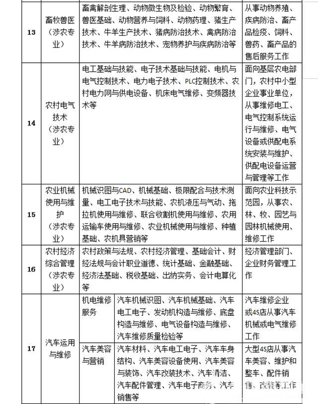 一、所有全日制農(nóng)村(含縣鎮(zhèn))學(xué)生、城市涉農(nóng)專業(yè)學(xué)生享受免學(xué)費(fèi)待遇。
