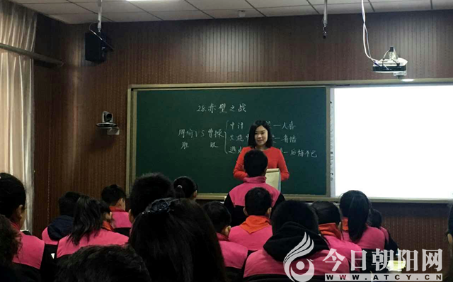 趙玲玲老師系朝陽市第三批小學(xué)語文名師,剛剛赴武漢學(xué)習(xí)而歸。她帶著教育前沿的理念,滿懷對教育的熱情,激情澎湃地為全體教師展示了S版六年級語文上冊第28課《赤壁之戰(zhàn)》。