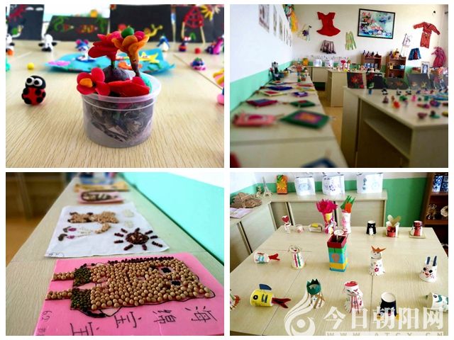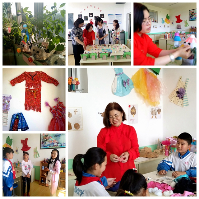 走進(jìn)我校的綜合實(shí)踐活動(dòng)教室,除了墻上排列整齊的各項(xiàng)規(guī)章制度和記錄本外,你會(huì)發(fā)現(xiàn)仿佛走進(jìn)了一場(chǎng)小型的博覽會(huì)。給蛋寶寶《設(shè)計(jì)防護(hù)服》;制作《紙杯玩具》;利用廢物《給照片穿上漂亮的外衣》;學(xué)生親手制作的《縫沙包》;精美的《我的房間我設(shè)計(jì)》構(gòu)圖方案;用黏土捏制的各種模型;用各色毛線編制的壁掛;用五彩絲線繡出的十字繡、鞋墊;五顏六色,造型別致的紙制服裝;造型各異的剪紙作品;用酒瓶、木板、奶粉罐、石頭、葫蘆繪制的各種臉譜;巧手裁衣小天使——于思涵和同學(xué)們用彩紙、廢舊布料制作的各種款式的衣服;用油桶、洗衣液桶、水桶、飲料瓶等制作的各種穿著五顏六色外衣的花盆里,土豆、洋蔥、大蒜、西紅柿等長(zhǎng)勢(shì)正旺,讓人恨不得馬上摘下來(lái)用桌上的自制炊具現(xiàn)場(chǎng)炒上一盤(pán),好好地品嘗一下這純天然的綠色蔬菜;那一幅幅精美的葉畫(huà),一張張記錄著學(xué)生精彩活動(dòng)的珍貴照片……無(wú)不告訴你這一切的作者都是美的發(fā)現(xiàn)者、欣賞者、創(chuàng)造者。