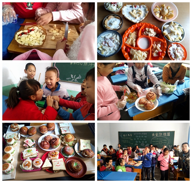 我與學(xué)生共同準(zhǔn)備課堂上所需要的材料,認(rèn)真傾聽(tīng)學(xué)生的設(shè)計(jì)方案,充分尊重學(xué)生的主體地位,鼓勵(lì)他們自主探究,大膽創(chuàng)新,主動(dòng)實(shí)踐。學(xué)生在動(dòng)手動(dòng)腦的過(guò)程中不但學(xué)會(huì)了科學(xué)知識(shí),掌握了方法技能,培養(yǎng)了正確的情感態(tài)度價(jià)值觀,更化身為美的發(fā)現(xiàn)者、欣賞者和創(chuàng)造者?;鸺t的楓葉、金黃的銀杏葉、還帶著一絲綠色的柳葉……各種形狀、各種顏色的葉子,為學(xué)生們提供了大顯身手的舞臺(tái)。學(xué)生們分工合作,有的化身成設(shè)計(jì)師,負(fù)責(zé)設(shè)計(jì)精美的圖案;有的化身成裝飾師,為圖案貼上美麗的葉片;有的化身成攝影師,用老師的手機(jī)記錄下同學(xué)們一個(gè)個(gè)精彩的瞬間和一幅幅精美的葉畫(huà)。那一幅幅精美的葉畫(huà),成為我校綜合實(shí)踐活動(dòng)室和走廊里最亮麗的風(fēng)景,《葉畫(huà)》也成為我校保留的校本教材;制作《自護(hù)小卡片》一課,學(xué)生們?cè)谝粡垙堅(jiān)O(shè)計(jì)精美的卡片上寫(xiě)下了自己對(duì)自我保護(hù)知識(shí)的積累;《自制泡泡液》時(shí),學(xué)生們通過(guò)自己親手配制,多次實(shí)驗(yàn),吹出了一個(gè)個(gè)又大又圓的泡泡,把校園變成了五光十色的海洋;《做水果沙拉》時(shí),孩子們變成身手不凡的大廚,水果刀、案板、一次性手套、沙拉醬、各種果蔬、造型各異的器皿……教室變成了學(xué)生們大顯身手的廚房。你看他們分工明確,程序井然,操作按部就班,擺盤(pán)造型別致……當(dāng)一盤(pán)盤(pán)水果沙拉擺滿書(shū)桌時(shí),誰(shuí)會(huì)想到它們是出自3、4年級(jí)的農(nóng)村孩子之手呢;《漢堡包》一課,我在驚嘆孩子們那越來(lái)越嫻熟的設(shè)計(jì)能力、動(dòng)手能力、合作能力的同時(shí),心靈上更是受到了強(qiáng)烈的震撼。“我想要把我做的漢堡包帶回家與家人一起分享”這是多么讓人感動(dòng)的話語(yǔ)。學(xué)生不但學(xué)會(huì)了知識(shí),學(xué)會(huì)了動(dòng)手,更學(xué)會(huì)了感恩,這就是真真切切的心靈之美,這不正是我所期望達(dá)到嗎?