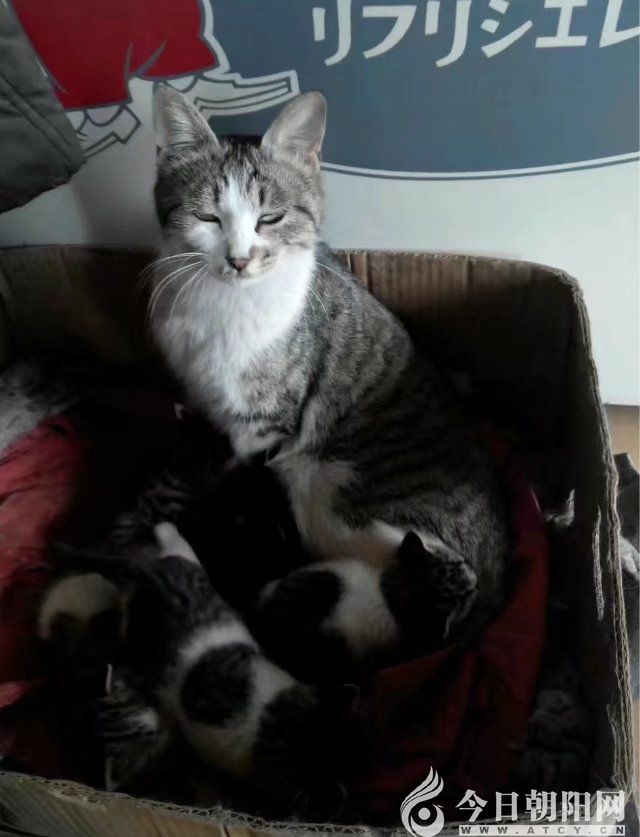 我上前去看了一下,貓媽正在窩里給貓孩子們喂奶。貓媽媽發(fā)現(xiàn)了我往窩里瞅,警覺地抬起了頭。沖著我“喵喵”地叫了兩聲,仿佛警告我說:“這是我的孩子,不要動啊。”