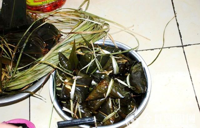 在我們的家鄉(xiāng)端午節(jié)要吃棕子,還要在粽子鍋煮雞蛋。家鄉(xiāng)的粽子制作是比較復(fù)雜的。主料是大黃米(一種叫黍子的農(nóng)作物去皮)及少許江米。先將米淘洗干凈后放在大的泥盆中浸泡一周以上才能用,包的時候要將買來的粽子葉用開水煮透,放入冷水中清洗,折疊成三角形,這防止米粒從角上露出去,在角上人們常常再放上紅棗,紅小豆,蕓豆、綠豆、芝麻、葡萄干等,集紅黃白綠于一體,外觀美麗大方、猶如一個精美的工藝品。放冷水中加猛火煮,水沸后轉(zhuǎn)入慢火煮2小時以上方能出鍋。在煮棕子的鍋里要煮雞蛋,棕子鍋煮出的雞蛋外觀草綠色,剝開皮里面的蛋黃都顯得草綠色,別有一番風(fēng)味,香氣滿口。