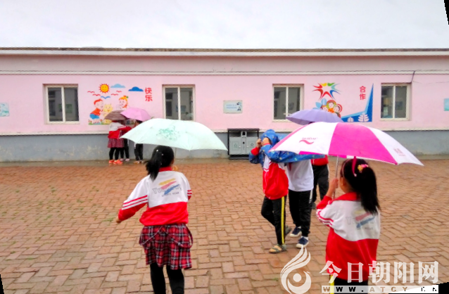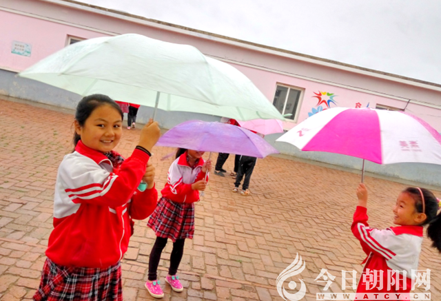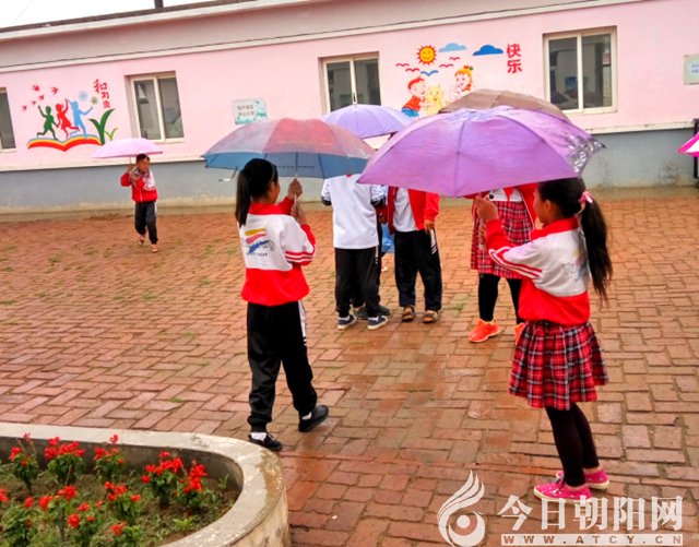 下課了,孩子們舉起自己的小花傘在校園里追逐著、打鬧著,這場久違的小雨讓孩子們興奮。佳琪手舉綠色的雨傘時而拋起,時而轉(zhuǎn)個圈兒。欣欣、敏兒、菲菲三人把傘扣在一起,儼然一頂小帳篷,老師的鏡頭里卻怎么也找不到可愛的小乖乖們,傘下卻傳出了嘻嘻哈哈的笑聲。孫慧、凱然這群孩子在雨中的傘下嬉戲,傘下笑靨如花。紅菲沒帶傘竟然把自己的紅色校服遮蓋在頭上,沒傘也擋不住她沐浴久違的甘霖。航宇自己頂著雨披,新宇也湊趣兒地鉆入雨披里,二人好像是要來一場舞獅大會。