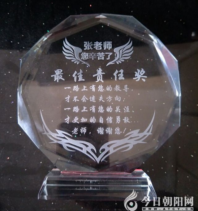 6月26日是一周的第一天,也是全體學(xué)生在校的最后一天,我依舊早早來到班級巡視。二十多年的班主任生涯,我養(yǎng)成了早晨到校就進(jìn)班級的習(xí)慣,看看學(xué)生們氣色如何,是否有缺席,衛(wèi)生怎么樣……作為班主任,我都要了然于心??次夷_步匆匆,即將進(jìn)入班級,呂鳳楠攔住我:“老師,等一下!”她鄭重其事拿出一個(gè)盒子,“老師,這是我們的一點(diǎn)心意!”我急忙阻止她:“孩子,你們還在讀書,不要花錢。”她笑了,“老師,你先看看!”我打開盒子,里面是一個(gè)精心制作的“最佳責(zé)任獎”獎杯,獎杯底下有一行小字:感謝您三年來的辛勤付出,我們才能茁壯成長,送給敬愛的您-–張老師!