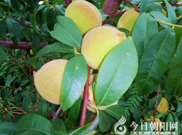 “快來看,室外桃源”!走在前面心急的人大喊一聲,吸引大家立刻加快了腳步。迎接大家的是一片桃林。桃熟壓枝低,紅綠各占半。枝頭上的大桃壓得枝杈彎下了腰身,有如一位位謙恭的人向來者點(diǎn)頭問好。而那些可人的桃子,就那樣滿懷自信地站在枝頭,炫出令人心動(dòng)的原色。它們有的三個(gè)一群,有的兩個(gè)一伙兒,像是正在背誦著“課文”,“園有桃,其實(shí)之肴”……還有的獨(dú)自一個(gè)在思考著什么,或許在想,自己那么胖,是不是應(yīng)該減減肥?撫摸它的時(shí)候,那毛茸茸的感覺讓你手里癢癢的……禁不住抬起頭,吸一口帶點(diǎn)甘甜的空氣,望望眼前如詩如畫的山莊美景,隨口吟詠“采菊東籬下,悠然見南山”,想想當(dāng)年的陶淵明一定就是在這樣的場景,生活在這樣的地方,觸發(fā)了靈感,寫下了千古名句。