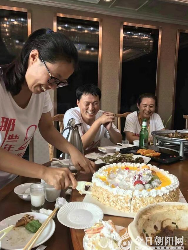 8月19日,聚會的同學(xué)游覽了鳳凰山,在二十年前我們合影的地方再次留念。我買了蛋糕,慶祝我們班級二十歲的生日。同學(xué)們?yōu)槲覝?zhǔn)備了鮮花,我眼含激動的淚花,享受著同學(xué)們叫我媽媽的喜悅。有的同學(xué)說,因?yàn)槭芪业挠绊?,畢業(yè)后選擇了從事語文教學(xué)工作。有的同學(xué)說,在他們的心里,我就是他們的媽媽。畢業(yè)后,有的家長叮囑孩子,找對象要讓你們老師參謀一下,你們老師如果不同意,就不要同意。飯后我們?nèi)ジ鑿d,唱了當(dāng)年歌詠比賽時唱的歌曲《同一首歌》、《團(tuán)結(jié)就是力量》。回顧走過的歲月,品味純真的情感。