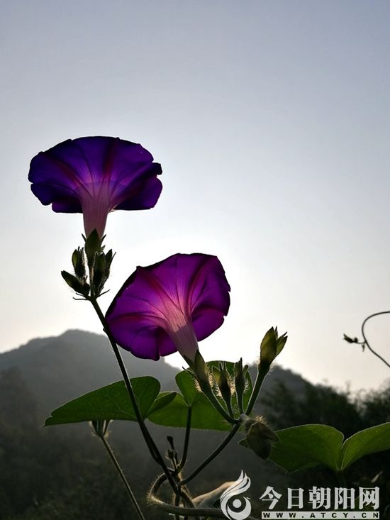 牽牛引頸奏天籟,秋葵漲臉戀晨昏。