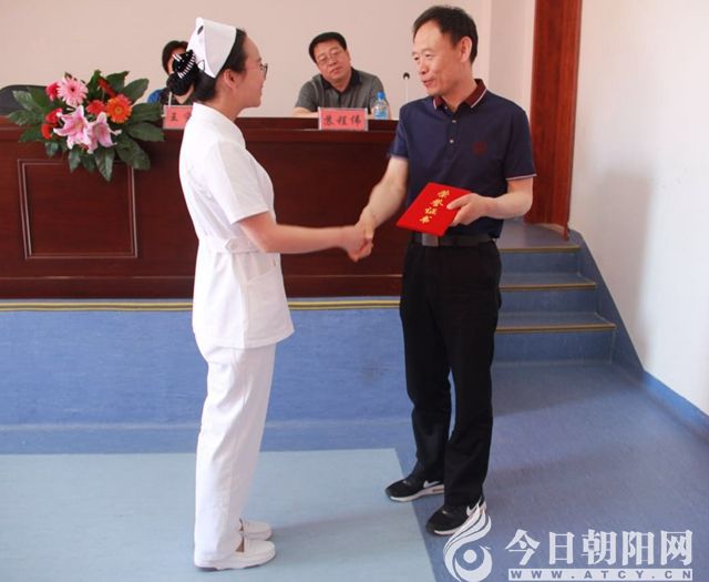 黨委書記孟慶元為優(yōu)秀護(hù)士頒發(fā)證書