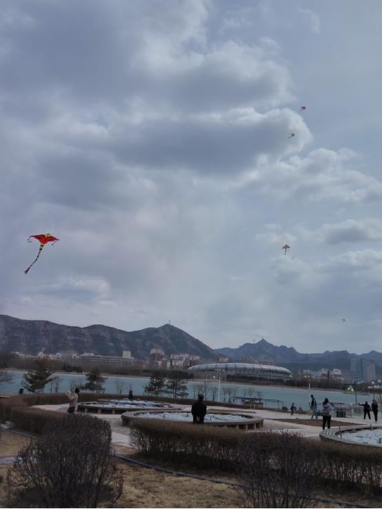 有老人帶著孩子祖孫一起放風(fēng)箏,爺爺手拿風(fēng)箏試著風(fēng)向,順風(fēng)一揚,風(fēng)箏飄飄悠悠的飛上了天,孫子跟在爺爺屁股后拽著線圈。有兩個小姑娘,站在大凌河岸邊,一只手舉風(fēng)箏試著風(fēng)向,邊試邊說:“這風(fēng)向也對啊,怎么就飛不起來呢?”小女孩再次把風(fēng)箏拋起,剛剛飛起一人多高,風(fēng)箏就又一頭栽了下來。路過的人建議她們到坡上去,以免風(fēng)箏墜入河里。