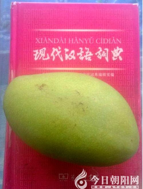今天早晨,我想給杧果稱重,可惜,桿秤不在樓上。于是想到了一個變通的方法,以《現(xiàn)代漢語詞典》為參照物給它照相,以見其大小。您看,我還沒徹底癡呆吧。