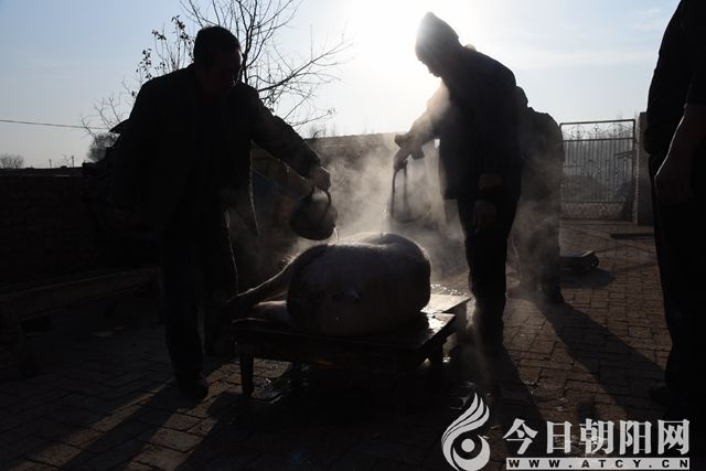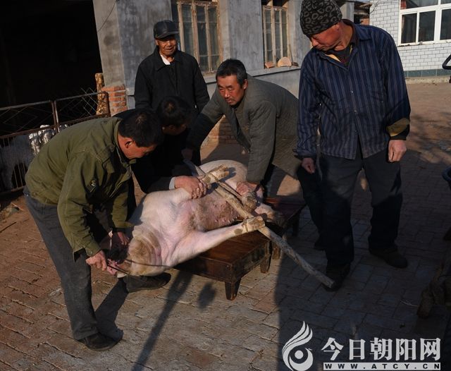 在我的老家有過了臘八殺年豬的習(xí)俗。但在國民經(jīng)濟(jì)困難時(shí)期,農(nóng)民家養(yǎng)豬用的是做飯的下腳料,淘米泔水刷鍋水,根本也沒有什么營養(yǎng),豬兒長得很慢,也沒什么膘。養(yǎng)一年毛重100斤就很不錯(cuò)了,誰家都想多養(yǎng)幾天,給豬盡量長的生長時(shí)間,不到年根兒前,誰家也舍不得殺。多數(shù)人家都是臘月二十七殺豬。久而久之,就形成了“二十七殺年豬”的年俗。殺年豬的目的一是有了一年的豬肉吃和炒菜的豬油;其二是為了能吃到新鮮的自家灌的豬血腸;三是能夠吃到正宗的自家做的殺豬菜。這一天還一定要邀請左鄰右舍來家里一起品嘗。其實(shí)最主要的是要感受濃濃的年味兒!那時(shí)候過年了家里要是沒殺個(gè)年豬就好像沒過年似的。