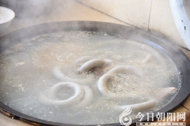 煮腸子最能考驗(yàn)家庭主婦的耐心。據(jù)行家講必須小火,輕翻動(dòng),來不得大火及猛烈攪動(dòng),不然會破裂。等到煮的火候差不多時(shí),用錐子扎一扎,冒血絲,太嫩,火候不到,出鍋也切不成塊;煮的時(shí)間太長了,豬血太老了,會呈蜂窩狀,口感又太差,必須恰到好處。