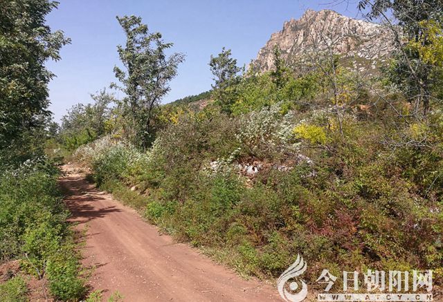 接到邀請,我開車帶著家人,從朝陽市區(qū)出發(fā),走南雙廟去往槐樹洞方向,再走去往北四家子那座大橋,不向左拐去鄉(xiāng)里,而是在橋頭右拐去謝杖子村方向,再走7公里右拐上山,就到了芹菜溝,一直開到山里(這段是土石路,但轎車也可以走)就到了姚翔飛的“花果山”了!