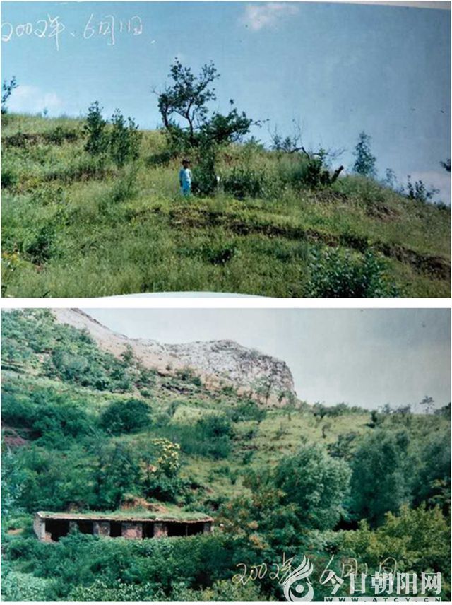 這是在當(dāng)天拍的另一張照片。在這僅存的兩張照片里,依稀可見當(dāng)年這山里的樣子。如果和現(xiàn)在的面貌做一下對比,我們可以想象15年來,他們是以怎樣艱苦的付出才換來這座“花果山”???!