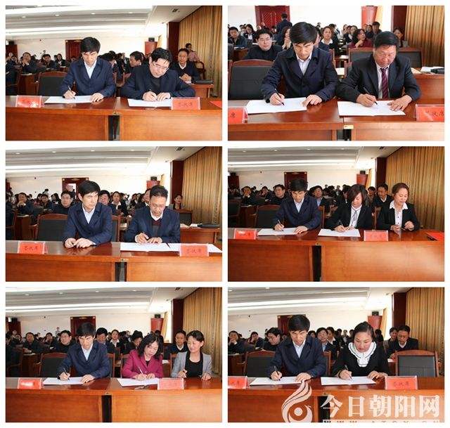 局黨委書記金明新與單位代表(朝陽市財(cái)經(jīng)學(xué)校、市第一高級(jí)中學(xué)、市第八中學(xué)、市教育幼兒園、市一尺和育英高級(jí)中學(xué))簽訂了《朝陽市教育局直屬中小學(xué)校落實(shí)黨建工作主體責(zé)任責(zé)任狀》。