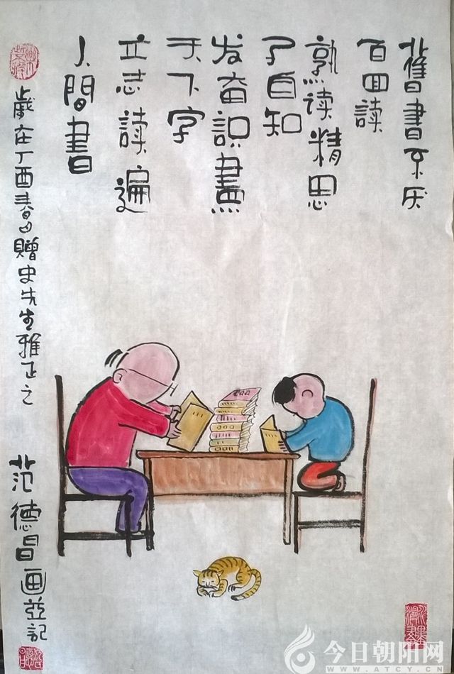 范德昌,1955年生于濰坊。自幼喜歡涂鴉,因家境貧寒未能進(jìn)美院深造,故一生難成大器??繛樯a(chǎn)隊和軍營辦宣傳欄,岀黑板報過把畫畫癮。從部隊轉(zhuǎn)業(yè)后,由原來畫油畫、國畫、水粉畫,又迷上了苦中作樂的漫畫,從投稿和退稿一樣多到一發(fā)不可收。30幾年來,在全國160余家報刊發(fā)表作品3000余件,60多次獲獎,岀版了9本個人畫集,被媒體稱之為農(nóng)民漫畫家、軍旅漫畫家、婚育漫畫家。特別是近幾年,將自編的順囗溜用自創(chuàng)體書寫到畫上的水墨漫畫,又被多家新聞單位稱之為扎根基層的民俗漫畫家。曾到歐美等十幾個國家和地區(qū)考察學(xué)習(xí)西方藝術(shù)。退居二線后,將漫畫藝術(shù)服務(wù)于地方中心工作而樂此不疲,被評為“山東省百名讀書人物”和提名“百名文化名人”。60歲退休后,跟著名民俗畫家邢振齡大師學(xué)民俗水墨小品,堅持夜晚讀書晨作畫,錯把花甲當(dāng)花季,每天一畫,雷打不動。幾年時間,《一生情系列》《憶童年系列》《老濰縣風(fēng)情系列》等千余幅民俗水墨小品畫傳布民間,十幾幅作品被韓國、新加坡等國家以及中國香港等地區(qū)的友人收藏,四格漫畫《孫悟空后傳》由攀枝花晚報連載。系山東省美協(xié)會員,省漫協(xié)理事兼副秘書長。被《漫畫人生》聘為指導(dǎo)老師。事跡被收編入《中國人才薈萃》和《二十一世紀(jì)人才庫》等辭書和傳記。
