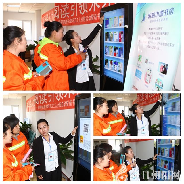 活動(dòng)中,朝陽(yáng)市圖書館向市環(huán)衛(wèi)局職工圖書館正式授牌,20名環(huán)衛(wèi)工人集中開展了經(jīng)典誦讀,突出了“我讀書我快樂(lè)”的主題?;顒?dòng)現(xiàn)場(chǎng),大量環(huán)衛(wèi)工人如饑似渴地閱讀新書,場(chǎng)景相當(dāng)感人。最有喜感的是,他們用手機(jī)從圖書館為分館配置的電子閱讀機(jī)上掃描二維碼,自由下載自己喜愛(ài)的圖書,畫面相當(dāng)生動(dòng)感人。