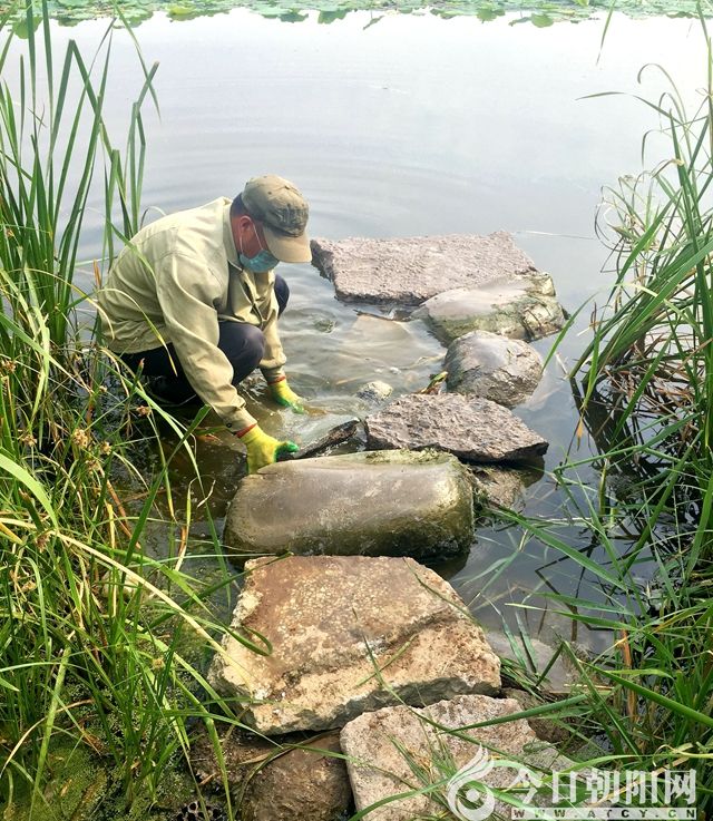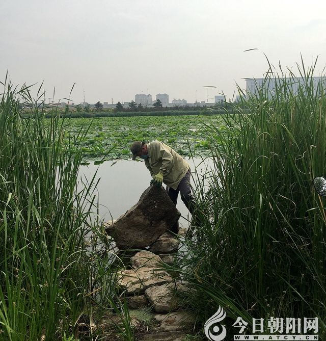看著他在水中足足浸泡了一個多小時,此時鞋和褲子全都濕透了,水沿著褲管往下流,就連手上戴的膠皮手套也磨破好幾個洞,額頭的汗水滴答滴答地浸透了口罩。我突然感到那么地愧疚,自己竟然還奢望向前延伸,豈不知他在水中是多么危險,石頭上的綠苔和水下淤泥都很滑,他隨時都有滑入深水區(qū)的危險,想想都有些后怕。