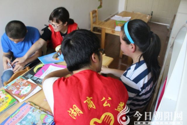 志愿者通過(guò)講故事的形式與孩子互動(dòng),來(lái)吸引自閉癥兒童的注意力。雖然有些孩子不愿配合,但在志愿者的耐心安撫下,所有孩子們圍成一圈,認(rèn)真聆聽(tīng)志愿者閱讀手中的故事。故事課堂旨在鍛煉自閉癥兒童的注意力,也是志愿者為輔助自閉癥兒童走向健康的創(chuàng)新方式。