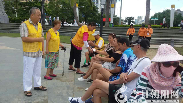 今年國慶中秋雙節(jié)相逢,8天假期,美麗溫暖的三亞成為國內(nèi)外游人的首選地之一。為迎接這個“加長黃金周”,三亞市組織5000名志愿者身穿嶄新的黃馬甲服務(wù)黃金周。三亞市異地養(yǎng)老老年人協(xié)會,留守和回到三亞的候鳥志愿者積極參加了此次公益活動。