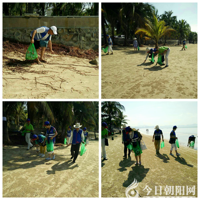 9月21日,老年協(xié)會志愿者在葉健祺、陳利民副理事長和董淑娥副部長的帶領(lǐng)下提前行動,到三亞灣景區(qū)沙灘保護環(huán)境撿拾垃圾。三亞灣的氣溫36攝氏度,驕陽似火沙灘滾燙,志愿者們整齊著裝不戴遮陽帽不打旱傘,在三亞灣海邊沙灘上一字排開、向前推進、認(rèn)真撿拾垃圾,中午收工時脫下的志愿者服,后背全部濕透。下午上崗就下起了雨,志愿者們頂雨撿拾垃圾,一直到下午5點鐘才收工。中秋節(jié)晚上,三亞灣海月廣場有上萬人賞月,垃圾特別多。董淑娥帶領(lǐng)4名志愿者清理果皮、煙蒂、花生皮,把沙灘和海月廣場清理得干干凈凈。