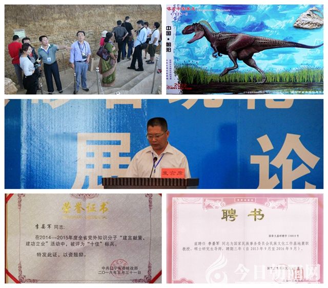 二、愛(ài)崗敬業(yè),傳播文化。由李晏軍領(lǐng)導(dǎo)的化石協(xié)會(huì),每年都開(kāi)展花樣繁多的化石文化活動(dòng),旨在幫助人們了解朝陽(yáng)、認(rèn)識(shí)朝陽(yáng),并對(duì)人們進(jìn)行科普與法制教育。作為宣傳化石文化的使者,他經(jīng)常走進(jìn)校園、廣播電視臺(tái)的直播間,向人們解讀與化石有關(guān)的法律法規(guī)和相關(guān)知識(shí),還經(jīng)常到外地講學(xué),義務(wù)宣傳化石文化。由其創(chuàng)辦的“中國(guó)化石網(wǎng)”已歷10年,點(diǎn)擊率一直居高不下。由其本人作詞的系列化石文化歌曲,已刻錄成光盤(pán)。2013年,他積極配合市政府,促使朝陽(yáng)成功申報(bào)了“中國(guó)化石之都”和“中國(guó)觀(guān)賞石之城”。并通過(guò)與吉林大學(xué)建立合作科研基地,為有效保護(hù)化石資源,提升化石科研價(jià)值做出了突出貢獻(xiàn)。他堅(jiān)持每年印刷出版化石明信片,幾年來(lái),出版發(fā)行了喀左中國(guó)暴龍、小盜龍、千禧中國(guó)鳥(niǎo)龍、熱河鳥(niǎo)、燕都華夏鳥(niǎo)、圣賢孔子鳥(niǎo)、遼寧巨龍、華麗羽王龍等一批明信片。