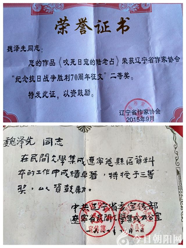 2015年12月,獲遼寧省作家協(xié)會(huì)“紀(jì)念抗日戰(zhàn)爭(zhēng)勝利70周年”征文二等獎(jiǎng)。