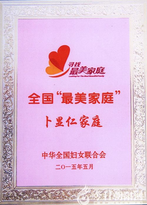 自文化大院成立起,卜顯仁自己就投進(jìn)去30余萬元,他說這都離不開家人的支持。兒子拿出6萬元錢給卜顯仁,讓他們老兩口上養(yǎng)老保險(xiǎn),那錢卻被卜顯仁用來蓋舞臺(tái)了,孩子們掏錢讓老兩口出去旅游,那錢最終也被用在建設(shè)文化大院上了。2015年5月,卜顯仁一家被全國婦聯(lián)評(píng)為第九屆“全國五好文明家庭”,卜顯仁光榮進(jìn)京,參加了在人民大會(huì)堂舉行的頒獎(jiǎng)慶典,這也是朝陽市唯一一家入選的全國“最美家庭”。另外,省婦聯(lián)和省文明辦也授予了他們家遼寧省“最美家庭”的稱號(hào)。