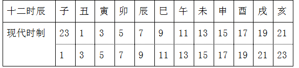 關(guān)于干支的記月記日,因未被人們普遍實(shí)行,故今天暫且不予多提。但干支記時(shí)辰是無(wú)論如何不能不說(shuō)的。以干支記時(shí)辰自漢代就已普遍實(shí)行了,其做法是把一晝夜劃分為十二個(gè)時(shí)段,再配以十二地支名,就是十二時(shí)辰。十二時(shí)辰與現(xiàn)代時(shí)制的對(duì)應(yīng)關(guān)系如下: