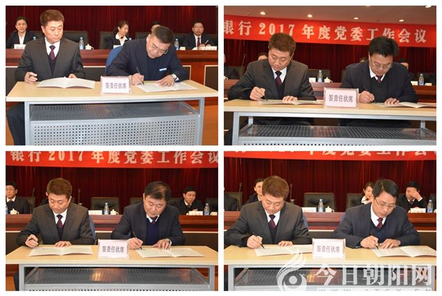 會(huì)上,朝陽(yáng)銀行黨委書(shū)記、董事長(zhǎng)趙光偉代表總行與沈陽(yáng)分行、凌源支行、凌濱支行、公司業(yè)務(wù)部4個(gè)分支行和總行部室代表簽訂了黨風(fēng)廉政建設(shè)和反腐敗工作責(zé)任狀;吳海亭代表總行與撫順?lè)中?、建平支行、興達(dá)支行、運(yùn)營(yíng)管理部4個(gè)分支行和總行部室代表簽訂了社會(huì)治安綜合治理暨安全保衛(wèi)工作責(zé)任狀。