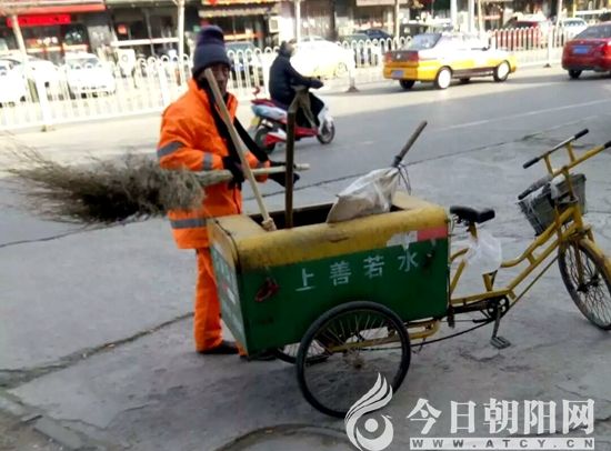一身橙黃色,推著一輛三輪車走在街上,車上載著竹子掃帚,白鐵的撮子。偶爾停下來,收集著這座城市殘落的碎屑。我的目光終于可以落在最接近的暖點上!可他始終沒有抬頭看我,一直低著頭專心地做著自己的工作!一把掃帚不時“嘩嘩”響著,與我身前,又錯落到身后……這個城市,這個世界,多么需要這些默默無聞的人掃盡塵埃!