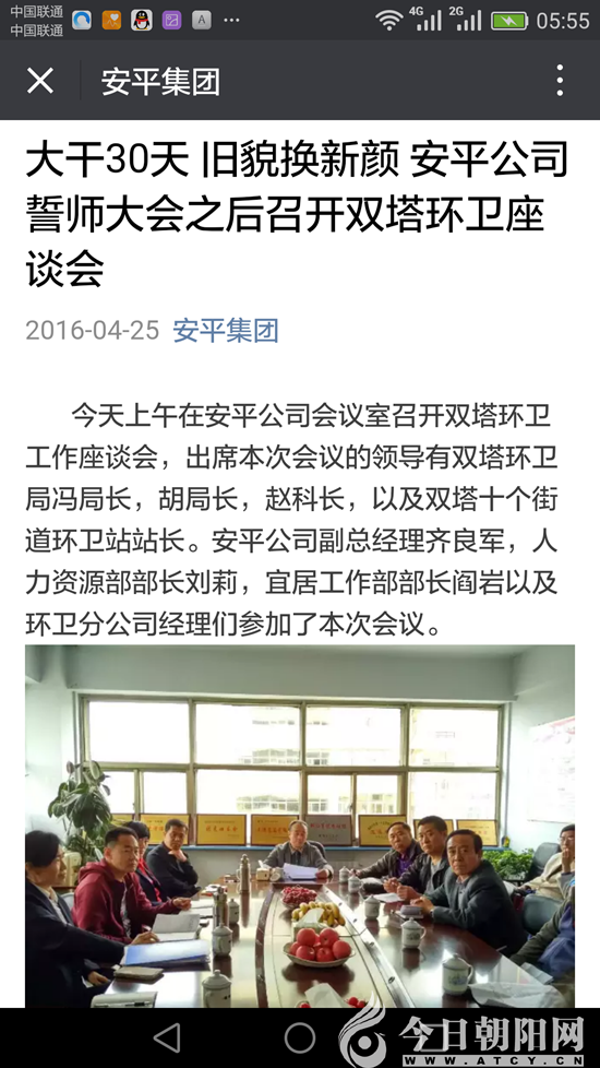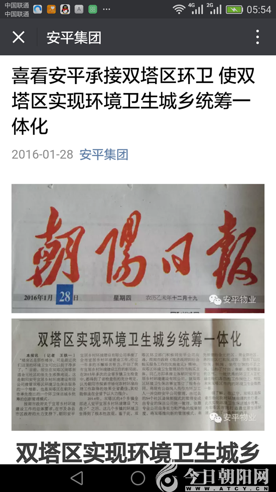 秉持上述服務宗旨和發(fā)展理念,近年來,安平集團持續(xù)加大參與和服務城市發(fā)展的力度,站在時代發(fā)展的前沿,及時整合資源,調(diào)整力量,排兵布陣,搶抓機遇,新成立了“朝陽安平宜居鄉(xiāng)村環(huán)境建設有限公司”,接管了雙塔區(qū)環(huán)境衛(wèi)生保潔服務工作,在朝陽全市率先推出了“環(huán)衛(wèi)保潔城鄉(xiāng)統(tǒng)籌”的創(chuàng)新管理模式。2016年1月28日,朝陽日報在頭版顯著位置以《雙塔區(qū)實現(xiàn)環(huán)境衛(wèi)生城鄉(xiāng)統(tǒng)籌一體化》為題進行了報道。報道中提到:“按照市政府關于宜居鄉(xiāng)村環(huán)境建設工作的總體要求,在市及各縣(市)區(qū)政府的大力支持下,承接了全市宜居鄉(xiāng)村環(huán)境建設工作。經(jīng)過一年多的不懈艱苦努力,開創(chuàng)了我市宜居鄉(xiāng)村環(huán)境建設工作的新局面,在2015年多次的全省鄉(xiāng)鎮(zhèn)衛(wèi)生檢查中,都得到了省檢查組的充分肯定,認為朝陽市在探索市場化農(nóng)村環(huán)境治理工作取得的效果全省最佳,其經(jīng)驗做法在全省予以大力推介。
