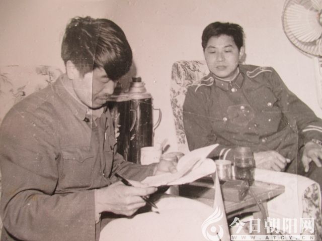 1986年5月12日,作者(左)在北京武警部隊(duì)招待所采訪武警英模劉政揚(yáng)