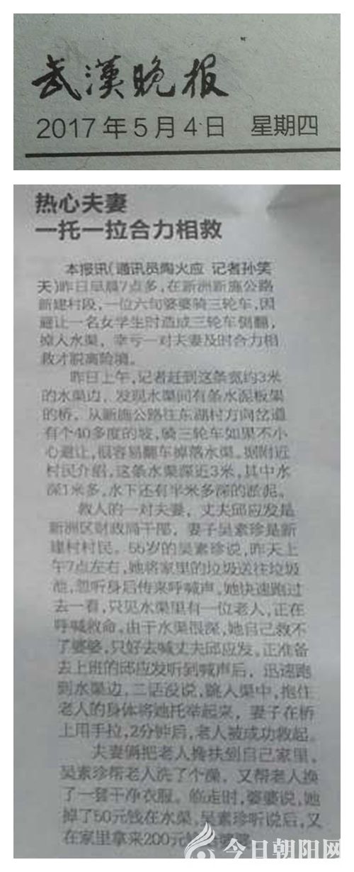(武漢晚報對邱應(yīng)發(fā)夫婦勇救落水老人事件的報道)