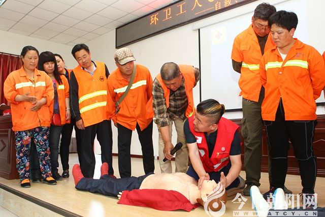 點贊!他們用心教環(huán)衛(wèi)工人學習急救知識