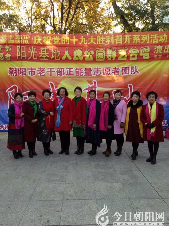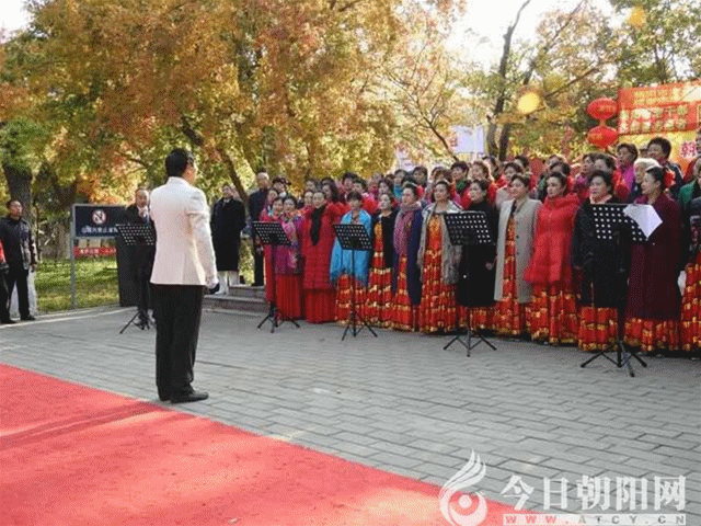 2017年10月24日,遼寧朝陽人民公園群藝合唱團參加陽光基地慶祝十九大系列活動的首場演出在人民公園東門廣場激情放歌,慶祝黨的十九大勝利閉幕。