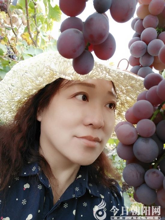 老公把車開到離老家不遠的山邊,對我說:“這里新建了一個葡萄山莊 咱去買點葡萄帶回去。”在山莊工作的老鄉(xiāng)對我們格外熱情。他說棚里架上還有葡萄,領我們去采摘。架上還有葡萄?我不敢相信自己的耳朵。跟著老鄉(xiāng)走進大棚,鋼筋架上一串串葡萄沉甸甸地垂著,直往臉上撞。老鄉(xiāng)說,這是冷棚巨峰,熟得晚也特甜。葡萄粒大飽滿,紫里透紅,掛著白灰,閃著亮光,吸引著我的眼眸,挑逗著我的味蕾。摘一粒入口,一股清冽的甘甜滲入肺腑。陽光透過塑料大棚灑在綠中泛黃的葡萄葉上,也溫暖著我。此時,我心潮涌動。這真是人間十月裹秋霜,棚中日暖釀琳瑯!我掏出手機,摘下口罩,看著葡萄拍,捧著葡萄拍,吻著葡萄拍……這意外的驚喜甜醉了我的笑靨,忘了我已年過不惑,忘了我對蒿草過敏。醉在這世外萄園里,不知人間有甲子。