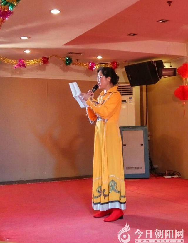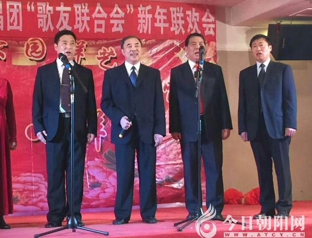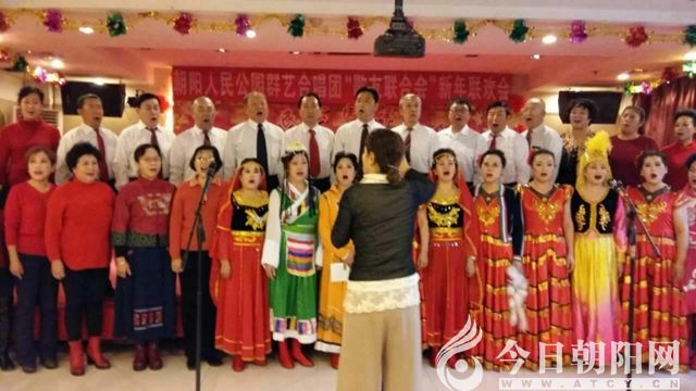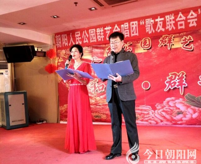 2016年12月25日,遼寧省朝陽人民公園群藝合唱團(tuán)迎來了一年一度的辭舊迎新歌友聯(lián)歡會(huì)。歌友們把自己打扮得漂漂亮亮,早早來到大連漁港酒樓。舞臺(tái)裝扮得紅紅火火,舞臺(tái)上方懸掛著大紅條幅,背影墻上鮮艷的牡丹花烘托著“和諧群藝”四個(gè)大字。張昭雪團(tuán)長和邱貴財(cái)會(huì)長上臺(tái)講話,祝賀新年。
