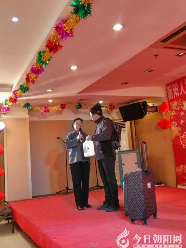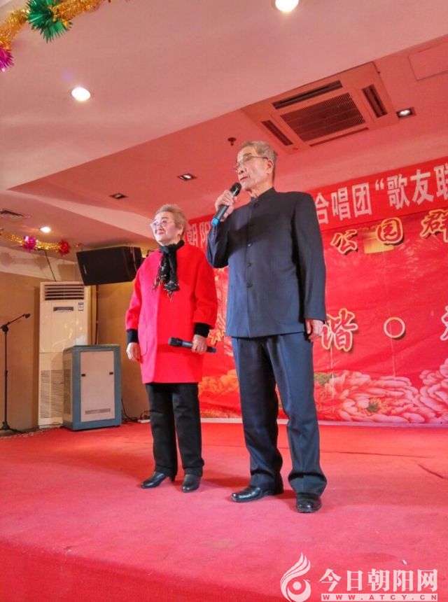 這臺(tái)聯(lián)歡會(huì)以“和諧”貫穿全場,歌舞、詩朗誦、小品、戲曲,各類節(jié)目爭奇斗艷。歌友自編、自導(dǎo)、自演,盡顯才華。八十多歲的孫紹臣和鄭雅輝老兩口,自己創(chuàng)作詩歌,在舞臺(tái)上脫稿表演揮灑自如,令人贊嘆不已。冀秀容和曹富勇老兩口,把《一壺老酒》這首膾炙人口的歌曲改編成音樂小品:老“母親”提著一壺凌塔酒,囑咐出外打工的“兒子”,“身在異鄉(xiāng)冷了累了喝上一口家鄉(xiāng)的老酒,暖暖身子解解乏。”冀秀容一身農(nóng)村老大娘的打扮、曹富勇背著雙肩包拽著拉桿行李箱,兩個(gè)人在臺(tái)上一亮相,就把全場歌友萌翻了。老團(tuán)長聶振平十多年來,天天早上指揮歌友晨練唱歌,可是很少登臺(tái)表演節(jié)目,今年也興高采烈地上臺(tái)領(lǐng)唱《英雄贊歌》《紅梅贊》。張淑霞的現(xiàn)代京劇沙家浜《共產(chǎn)黨就像天上的太陽一樣》,關(guān)家華的黃梅戲《海灘別》,唱得有滋有味。